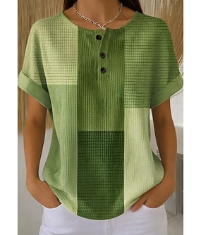 Dámské Waffle texturované pletené topy T-shirt ombre grafika geometrie stylová klasická krátký rukáv kulatý výstřih Henley pravidelné topy denní sportovní černá a bílá světle zelená khaki duhová léto