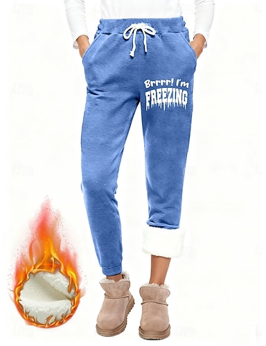 Dámské Tepláky Fleecové kalhoty Kalhoty Módní Základní Na běžné nošení Plná délka Vysoký pas Písmeno Šňůrky Kapsy Tisk Zahřívací Větruvzdorné Pohodlný Elastické Dovolená ulice Ležérní Černá Světl