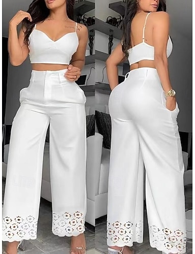 Dámské Široké nohavice Kalhoty chinos Rovné Elegantní prázdniny Vinobraní Plná délka Středně vysoký pas Pevná barva Slátanina Kapsy Pohodlný Neelastické Denní Domů Venkovní Bledě růžová rýžově bíl