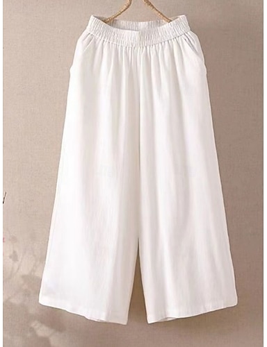 Dámské Capri kalhoty Imitace bavlny a lnu Široké nohavice Kalhoty chinos prázdniny Šik ven Na běžné nošení Plná délka Středně vysoký pas Bez vzoru Kapsy Elastický pas Prodyšné Lehce elastické Denn