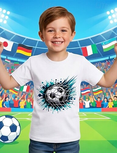100% bavlna Děti Chlapecké Černá Bílá Grafika Fotbal Fotbalová trička Tričko Blůzky Tričkový Krátký rukáv Venkovní Na den Módní Šik ven Designové Potisk Léto