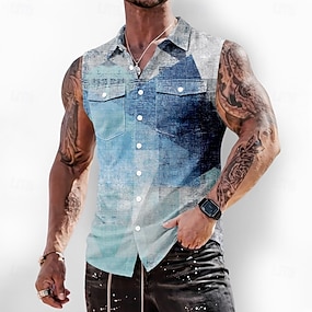 Pánské Geometrický Barva přechodu Abstraktní umění Košile Košile na knoflíky Košile bez rukávů Bez rukávů Móda pro volný čas Denní Dovolená Léto Jaro Přehnutý 3D tisk Přední dvě kapsy Vodní modr