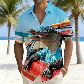 Pánské Zvíře Komiks Krokodýlí Havajská košile Košile na knoflíky Aloha košile Krátký rukáv Legrační Dovolená Oblečení na pláž Léto Jaro Přehnutý 3D tisk Len jako košile Vodní modrá
