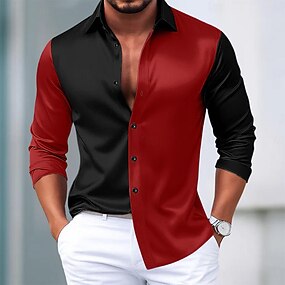 Pánské Košile Saténová košile Košile k obleku Košile pro volný čas Košile na knoflíky Plesová košile Barevné bloky Párty Ležérní Černá Rubínově červená Zlatá Dlouhý rukáv Klopa Jaro & podzim Celý rok