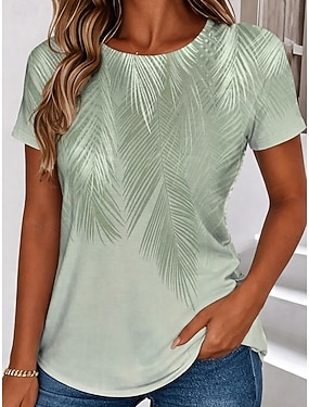 Dámské Tričko Tisk Květinový Grafika Rostliny Módní stylové Klasické Krátký rukáv Tričkový Běžné topy Ležérní Denní Sport Vodní modrá Světlá růžová Trávová zelená Léto Jaro