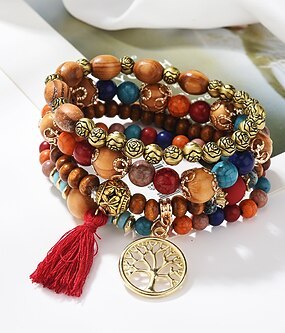 Dámské Korálkový náramek Klasické Náramky Vícevrstvé Móda Strom života Kytky Elegantní Módní Přizpůsobeno Střapec Cikánské Slitina Náramek šperky Černá / Bílá / Světlá růžová Pro Dar Dovolená Rande