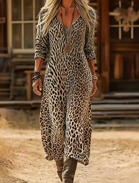 Dámské Midi šaty Boho šaty Volnočasové šaty Šaty Peplum Elegantní Módní Moderní Venkovní Dovolená Párty Běžný Leopard Dlouhý rukáv Šněrování na krku Oranžová Jaro Podzim