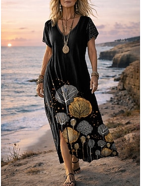 Dámské Maxi šaty Boho šaty Volnočasové šaty Áčkové šaty Šaty s potiskem Vinobraní Venkovní Plážové Dovolená Běžný Květinový Grafika Krátký rukáv Do V Trávová zelená Léto Jaro