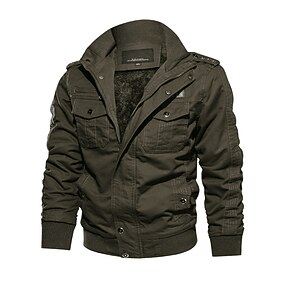 Pánské Outdoorová bunda Taktická bunda Venkovní Denní nošení Teplý Zip Kapsy Podzim Zima Bez vzoru Módní Šik ven Klopa Standardní Černá Khaki Armádní zelená Saka