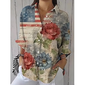 Tričko s patriotickým motivem pro Den nezávislosti Dámská košile Květinová Grafika Vlajka Vintage Stylové Dlouhý rukáv Křídlatý rukáv Bell Rukáv Košilový límec Každodenní Pracovní Prázdninové
