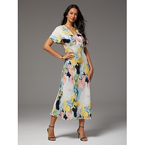 Dámské Žena Šaty s potiskem Bílá Poloviční rukáv Květinový Elastický pas Potisk Léto Jaro Jaro léto Úzký výstřih Kulatý Elegantní Pohodlné XS S M
