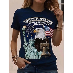Tričko s krátkým rukávem pro ženy k americkému Dni nezávislosti grafika národní vlajka vintage stylové klasické kulatý límec každodenní víkendový potisk černá