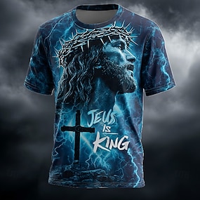 Pánské tričko křižáků Biblí Ježíš je král trnová koruna kříž blesk elektricky modré mocné křesťanské náboženské celopotiskové tričko krátký rukáv kulatý výstřih kostelní dárek návrhářské oblečení