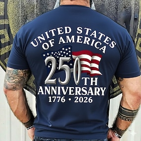 4. července 2026 250. výročí památného dne Pánské 3D tisk tričko s americkou vlajkou crew neck s krátkým rukávem pro denní nošení městská móda