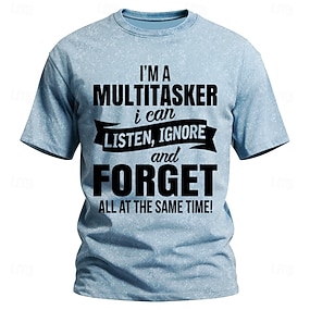 Pánské tričko s potiskem, dělám více věcí najednou, můžu poslouchat, ignorovat a zapomenout na všechno zároveň, text, vtipný slogan, acid wash, vintage streetwear, grafické, s krátkým rukávem,