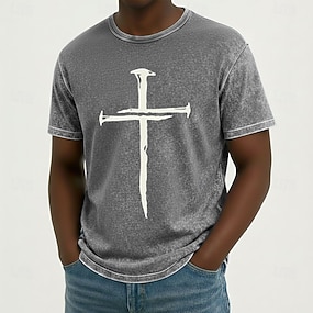 Pánská bible Kříž Ježíš Tričko Minerální Washed Tričko Krátký Rukáv Tričko Kyselé Washed Kulatý Výstřih Tričko Náboženské Vintage Retro Ležérní Každodenní Modrá Fialová Šedá Léto Jaro Oblečení