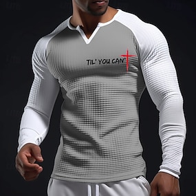 Pánská košile rytířů bible dokud můžeš' červený kříž křesťanské inspirativní v-neck Henley dlouhý rukáv raglán tričko grafika vaflová textura slim fit svalový fit kostel designové oblečení