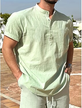Pánské Košile Košile s páskovým límečkem Letní košile Plážová košile Pevná barva ulice Denní Trávová zelená Krátký rukáv Kulatý límeček Jaro léto Oblečení