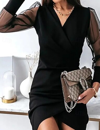 Dámské Mini šaty Černé šaty Koktejlky Formální šaty Elegantní šaty Elegantní Rozdělené rukávy Formální Běžný Pevná barva Dlouhý rukáv Do V Vodní modrá Černá Bílá Světlá růžová Podzim