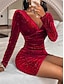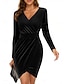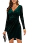 Dámské Mini šaty Zavazovací šaty Bodycon šaty koktejl Semiformální šaty Kancelář Štíhlý Bez vzoru Dlouhý rukáv Do V Černá Rubínově červená Vodní modrá Trávová zelená Jaro Podzim Zima