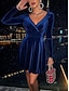 Dámské Mini šaty Sametové šaty Koktejlky Obyčejné šaty Na běžné nošení Párty Sporty a outdoor ulice Běžný Bez vzoru Dlouhý rukáv Do V Fialová Námořnická modř Trávová zelená Podzim Zima