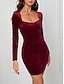 Dámské Mini šaty Sametové šaty Šaty na párty Koktejlky Elegantní Moderní Párty Večerní oslava Rande Běžný Bez vzoru Dlouhý rukáv Hranatý Fialová Tmavě zelená Hnědá Podzim Zima