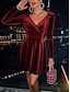 Vánoce Dámské Mini šaty Plášťové šaty Elegantní Večírek koktejl Venkovní Párty Svatební host Běžný Pevná barva Dlouhý rukáv Tričkový Do V Černá Rubínově červená Vodní modrá Podzim Zima
