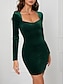 Vánoce Dámské Mini šaty Plášťové šaty Elegantní Večírek koktejl Venkovní Párty Svatební host Běžný Pevná barva Dlouhý rukáv Hranatý Černá Fialová Tmavě zelená Podzim Zima