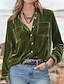 Dámské Košile Halenka Pevná barva Základní Na běžné nošení Dlouhý rukáv Košilový límec Běžné topy Denní Knoflíky Kapsy Rubínově červená Hnědá Trávová zelená Podzim Zima