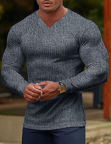 Pánské Tričko Svalová košile Tričko s žebrovaným úpletem Tričko Top Dlouhý rukáv Do V Léto Bez vzoru Pit Strip Módní Designové Základní Pletenina Dovolená ulice Jdeme ven Černá Bílá Světlá růžová Top