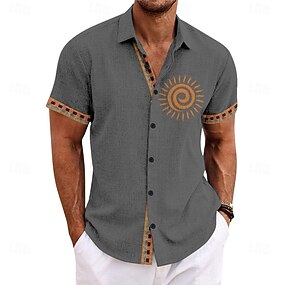 Pánské Geleneksel Košile Košile na knoflíky Krátký rukáv Na běžné nošení Africký vzor Denní Dovolená Léto Jaro Přehnutý 3D tisk Tlačítko dolů Vodní modrá Hnědá Šedá