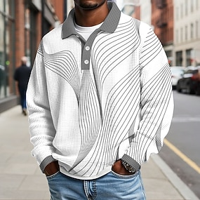 Pánské Grafika Waffle Polo košile Dlouhý rukáv Polo tričko Košile s límečkem Na běžné nošení Venkovní Oblečení na atletiku Streetwear Knoflíky Vodní modrá Trávová zelená Šedá