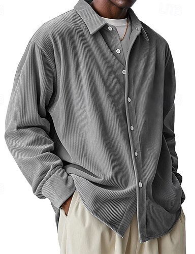 Pánské Kordurová košile Černá Fialová Hnědá Šedá Dlouhý rukáv Bez vzoru Přehnutý Škola Trénink Kapsy Oblečení Vinobraní Klasické Na běžné nošení