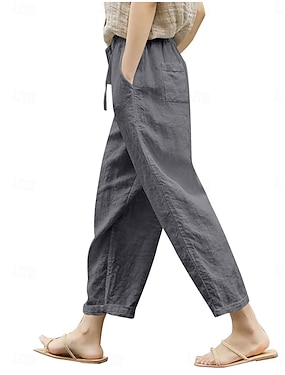 Dámské Imitace bavlny a lnu Letní kalhoty Kalhoty Běžné Denní Po kotníky Bez vzoru Šňůrky Boční kapsy Prodyšnost Pohodlné Neelastické Víkend Bílá Námořnická modř Béžová Šedá Jaro léto Běžný