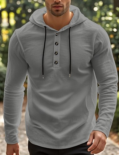 Pánské Košile Lněná košile Popover košile Letní košile Oblečení na pláž Košile s kapucí Bez vzoru Ležérní Dovolená Šedá Dlouhý rukáv Kapuce Léto Jaro Oblečení