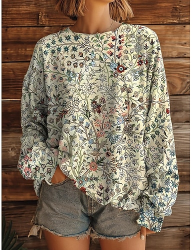 Dámské Pullover Květinový Grafika Vinobraní Módní Na běžné nošení Dlouhý rukáv Kulatý Běžné topy Práce Ležérní Jdeme ven Slátanina Tisk Kaštanově hnědá Oranžová Béžová Jaro. Podzim. Zima. Léto