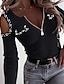 Valentýnské dámské tričko srdce neformální běžné vrcholy dlouhý rukáv V výstřih asymetrický výstřih patchwork potisk regular fit dovolená každodenní černé podzim zima