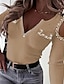 Dámské Halenka Bez vzoru Vinobraní stylové Dlouhý rukáv Do V Běžné topy Denní Dovolená Jdeme ven Slátanina Zip Černá Khaki Podzim Zima