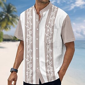 Pánské Rostliny Bambus Košile Košile s límečkem Krátký rukáv Móda pro volný čas Dovolená Oblečení na pláž Léto Jaro Stojáčkový límec Kulatý límeček límec dědečka Tlačítko nahoru 3D tisk Len jako