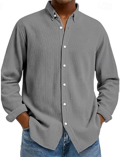 Pánské Košile Košile pro volný čas Kordurová košile Košile na knoflíky Černá Bílá Světle zelená Rubínově červená Námořnická modř Dlouhý rukáv Přehnutý kancelář a kariéra ulice Oblečení Polyester