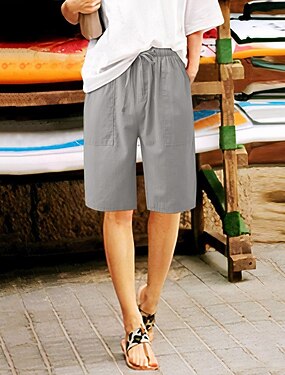 Dámské Bermudské kraťasy Capri kalhoty Imitace bavlny a lnu Letní šortky Módní Základní Na běžné nošení Délka kolen Středně vysoký pas Bez vzoru Šňůrky Boční kapsy Vydutý Pohodlné Neelastické Plážov