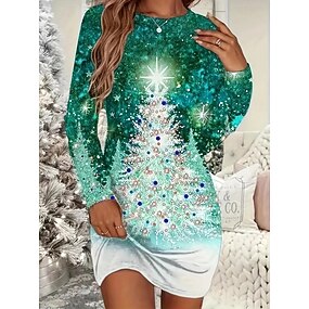 Dámské Mini šaty Tričkové šaty Úpletové šaty prázdniny Na běžné nošení Denní Dovolená Rande Běžný Grafika Vánoční stromek Dlouhý rukáv Tričkový Rubínově červená Vodní modrá Hnědá Trávová zelená Jaro