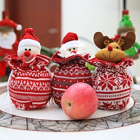 pletená 3D taška na vánoční jablka, taška na balení vánočních dárků, dárková taška na vánoční cukroví pro laskavosti na vánoční večírek