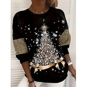 Dámské Pullover Grafika Vánoční stromek Na běžné nošení Dlouhý rukáv Tričkový Běžné topy Ležérní Dovolená Černá Světlá růžová Rubínově červená Vodní modrá Trávová zelená Jaro Podzim Zima
