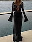 Dámské Dlouhé šaty Maxi šaty Šaty na párty Koktejlky Saténové šaty Elegantní šaty Módní Moderní Rukávový manžetový rukáv Párty Zvláštní příležitosti Večerní oslava Běžný Bez vzoru Dlouhý rukáv Do V