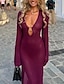 Dámské Midi šaty Flitrové šaty Elegantní Módní Moderní Venkovní Párty Denní Běžný Bez vzoru Dlouhý rukáv Do V Černá Bílá Žlutá Rubínově červená Jaro Podzim