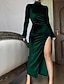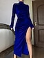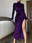 Dámské Midi šaty Šaty na párty Koktejlky Saténové šaty Elegantní šaty Módní Moderní Párty Večerní oslava Běžný Bez vzoru Dlouhý rukáv Stojáček Černá Světlá růžová Fialová Vodní modrá Podzim Zima