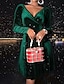 Dámské Mini šaty Vánoční šaty Šaty na párty Koktejlky Saténové šaty Módní Moderní Vánoce Párty Večerní oslava Běžný Bez vzoru Dlouhý rukáv Do V Černá Rubínově červená Vodní modrá Trávová zelená