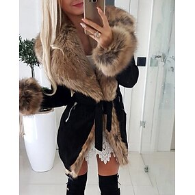 Dámské Zimní kabát Kabát Kabát z umělé kožešiny Zahřívací Pohodlné Slátanina Na běžné nošení Bez vzoru Venkovní Dovolená Jdeme ven Víkend Dlouhé Přehnutý Štíhlý Dlouhý rukáv Svrchní oděvy Čern