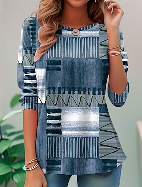 Dámské Tričko Tisk Grafika Geometrický Vinobraní Módní stylové Dlouhý rukáv Tričkový Běžné topy Denní Víkend Vodní modrá Světlá růžová Hnědá Khaki Léto Jaro Podzim